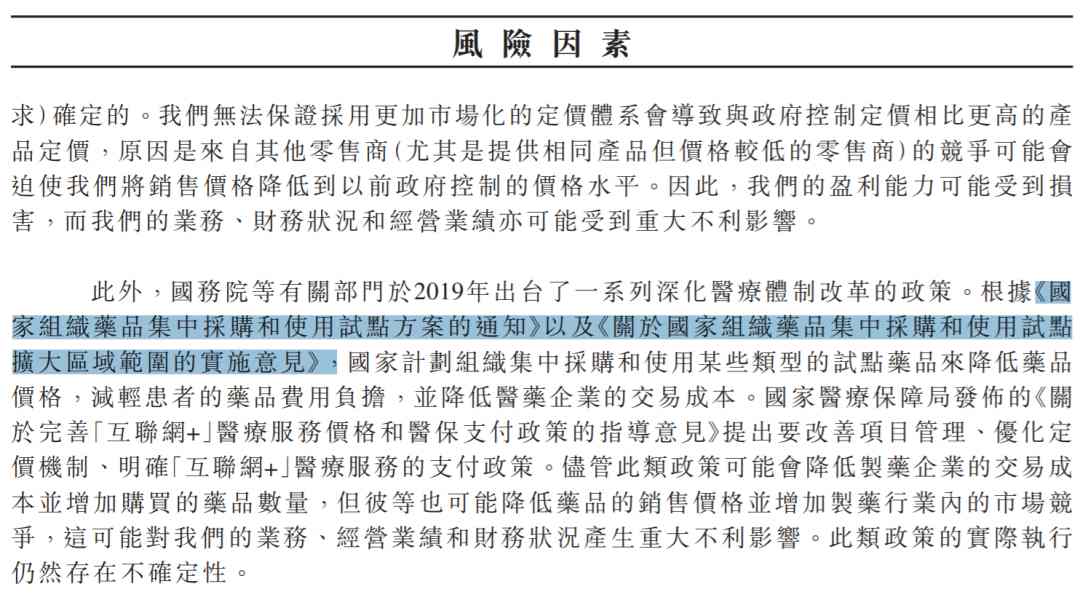 业态决定了线上药房的低毛利率,“集采”大背景下毛利率只会更低,这是潜在的、很大概率出现的风险。