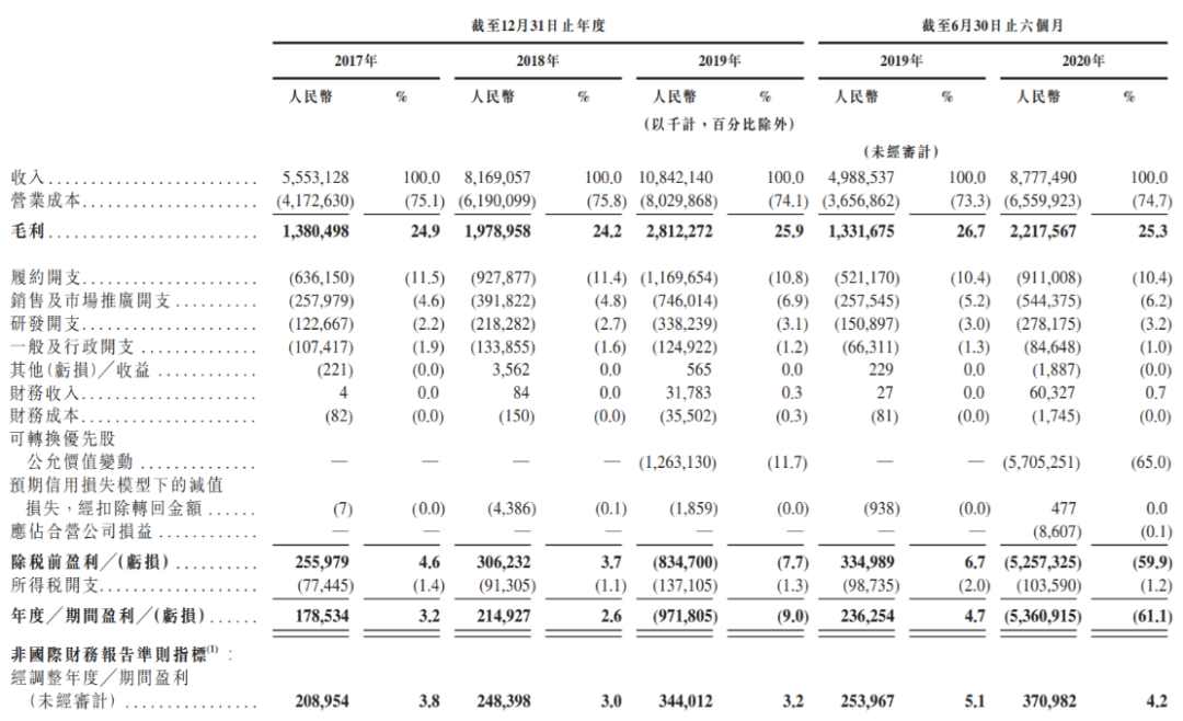 2017年-2019年,京东健康的收入分别为55.5亿元、81.7亿元(同比增长47%)、108.4亿元(同比增长33%)。2019年H1-2020年H1,它的收入分别为49.9亿元和87.8亿元(同比增长76%)。