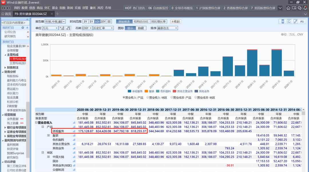图:美年健康停滞的体检收入,来源自wind金融终端。