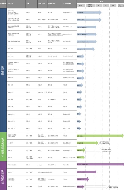 除了小分子和生物药外,公司还有3款通过合作研发方式引进的自体CAR-T细胞治疗产品已获得新药临床批件,1种正准备IND申报材料。共有超过10种针对肿瘤的细胞治疗在研产品。