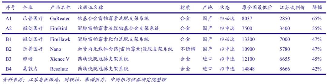 图5:江苏省冠脉支架采购中标情况 。来源:江苏省医保局、财联社
