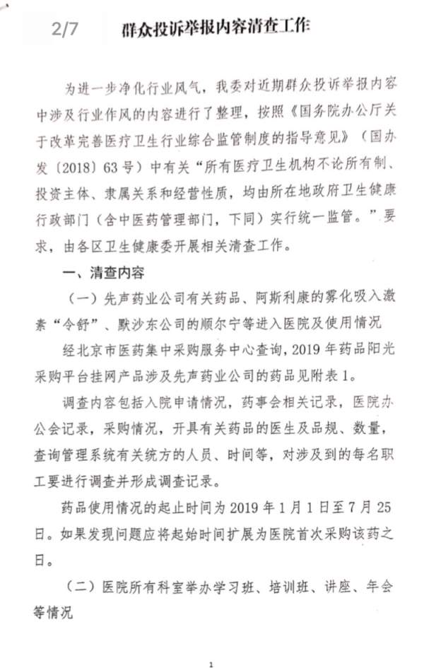 2019年7月份,北京市卫健委发布的《关于开展群众投诉举报内容清查工作的通知》(下称《通知》)显示:有群众举报先声药业通过贿赂医生的方式增加处方量,回扣金额从25%到46%不等。