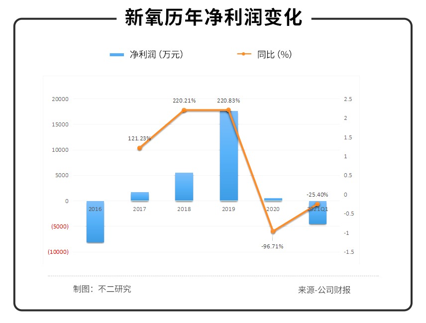 「不二研究」整理新氧2016-2021年第一季度的财务数据发现,经历2017-2019年的爆发式增长后,新氧在2020年增速放缓,尽管2020年有疫情的影响在,但新氧的净利润在2020年和2021年Q1出现了断崖式下跌,分别同比下降96.71%和25.40%。