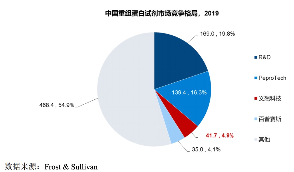 据招股书显示,义翘神州2020年全年营收15.96亿元,净利润为11.28亿元,增长近30倍,其重组蛋白总销售额在国产厂商中排名第一。