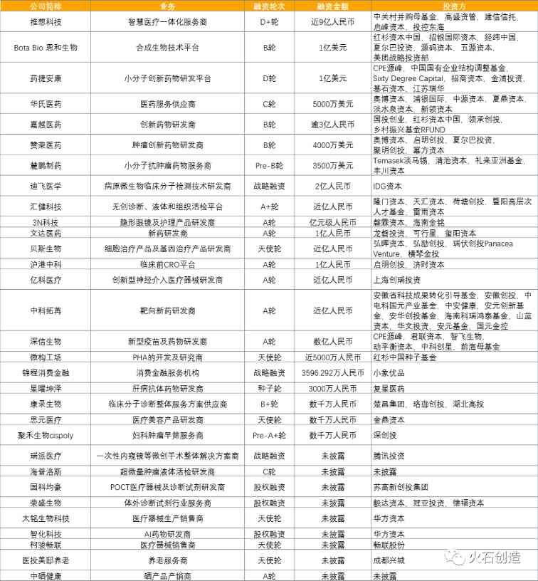 本周医健行业活跃投资机构:红杉资本中国、夏尔巴投资、CPE源峰、奥博资本、启明创投、华方资本(各2起)。 表 1:本周医健行业融资事件一览