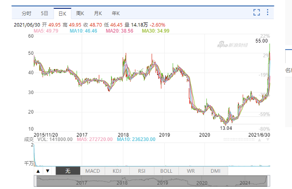 这样低迷的行市直到今年六月份才有所改观,公司股价从6月2日的27.75港元飙升至历史新高的55港元。但考虑到今年民营医院整体大幅上扬的行情,以及康宁医院并未公布任何证明公司业务取得实质性突破的消息,因此在这一波股价上扬中,企业受益于身处风口的成分不低,并未体现出资本对其具有额外关爱。