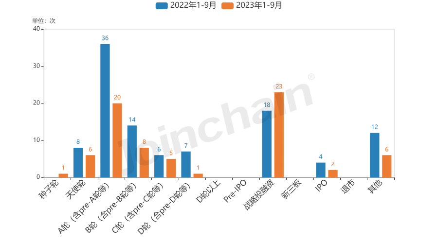 图表2 2022年1-9月 VS 2023年1-9月高值耗材领域融资轮次对比情况