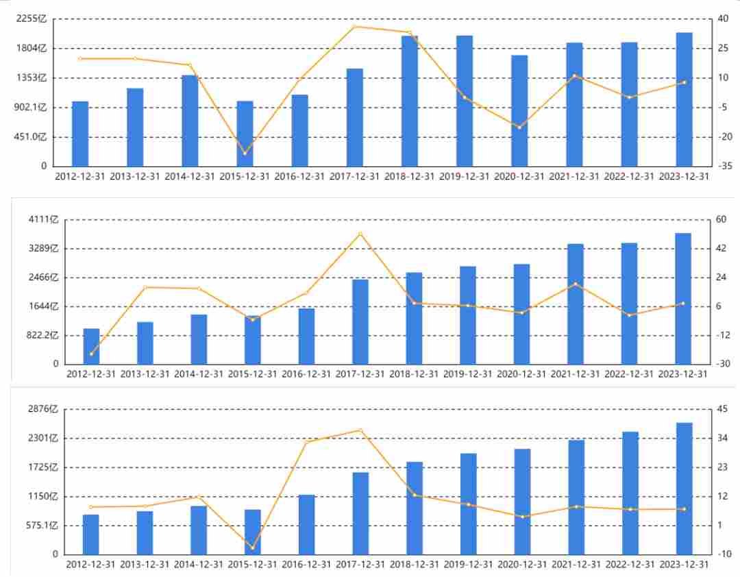 近12年间,格力营收有2年大幅下滑,还有2019年和2022年0.24%、0.26%的超低增长,反观美的同期均实现了增长,整体增幅远高于格力。海尔在2015年有过一次-7.36%的增长,其他年份也都实现正增长。